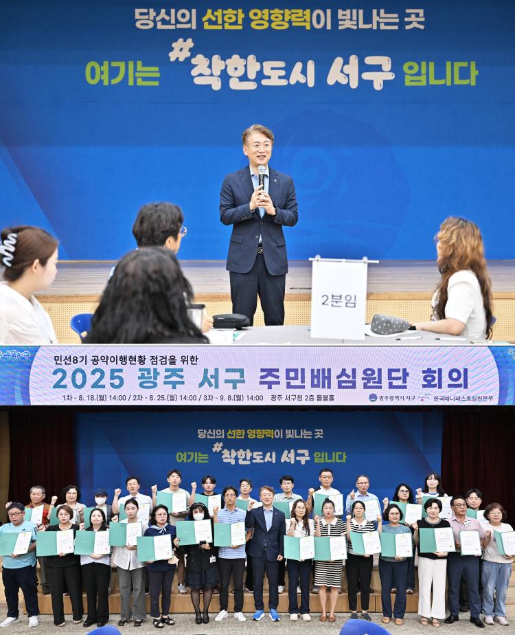 (¾Æ·¡ »çÁø) ±èÀ̰ ±¤ÁÖ ¼±¸Ã»ÀåÀÌ 18ÀÏ ¼±¸Ã» µéºÒȦ¿¡¼ ¿¸° ¹Î¼±8±â °ø¾àÀÌÇàÇöȲ Á¡°ËÀ» À§ÇÑ ¡®Áֹιè½É¿ø´Ü À§ÃË½Ä ¹× Á¦1Â÷ ȸÀÇ¡¯¿¡¼ À§ÃËÀåÀ» ¼ö¿©ÇÑ ÈÄ Âü¼®ÀÚµé°ú ±â³äÃÔ¿µÀ» Çϰí ÀÖ´Ù.