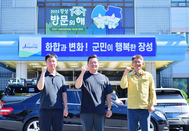 À强±ºÃ» ¾ß¿Ü ÁÖÂ÷Àå¿¡¼ Â÷·® ÈÀ硦°ø¹«¿øÀÌ Ãʱâ ÁøÈ. (¿ÞÂʺÎÅÍ)김태국¡¤김태현¡¤박근우 주무관 (»çÁø=À强±º)