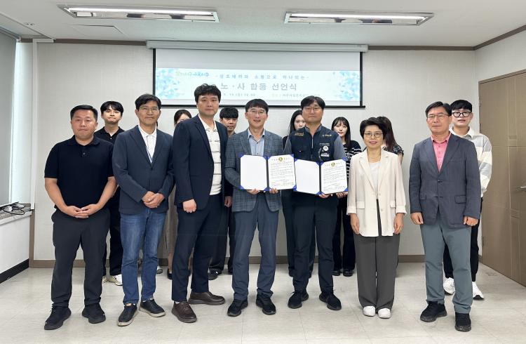 Á¤Ã¢¿í ÀÌ»çÀå Á÷¹«´ëÇà°ú Á¶±¤È£ ³ëµ¿Á¶ÇÕ À§¿øÀåÀº °¢°¢ ³ë‧»ç ´ëÇ¥·Î ³ª¼ °ø´Ü ¹ßÀü°ú Áö¿ª»çȸ ¼ºÀåÀ» À§ÇÑ Çù·ÂÀ» ¾à¼ÓÇϸç 4°¡Áö Ç׸ñ¿¡ ÇÕÀÇÇß´Ù.