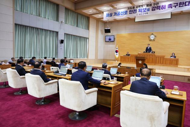 ƯÈ÷, ½Å¾È±ºÀÇȸ´Â À̳¯ Á¦2Â÷ º»È¸ÀÇ¿¡¼ ¡¸ÇØ»ó °¡°ø¼±·Î ¾ÈÀü È®º¸¸¦ À§ÇÑ °áÀÇ¡¹¸¦ Ã˱¸ °ÇÀÇÇß´Ù. °áÀǹ®¿¡¼ ÀÇȸ´Â "¿ì¸® ±º °ü³»¸¦ Ç×ÇØÇÏ´Â ¼±¹Ú°ú ÇØ»ó °¡°ø¼±·ÎÀÇ Á¢ÃËÀ¸·Î ¾ÈÀü»ç°í°¡ ºó¹øÇÏ°Ô ¹ß»ýÇϰí ÀÖ¾î, ÁÖ¹ÎÀÇ »ý¸í°ú Àç»êÀ» º¸È£ÇÏ°í ¾ÈÁ¤ÀûÀÎ Àü·Â °ø±ÞÀ» È®º¸Çϱâ À§ÇÑ °ü°è±â°üÀÇ Àû±ØÀûÀÎ Á¶Ä¡°¡ ÇÊ¿äÇÏ´Ù"¶ó°í °Á¶Çϸç ÇØ»ó °¡°ø¼±·Î ¾ÈÀüÀÇ ½Ã±Þ¼ºÀ» ÁöÀûÇß´Ù.