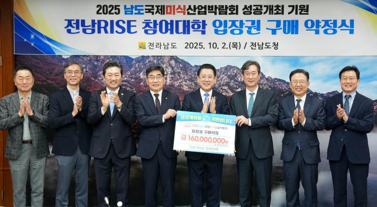 [±¤ÁÖÀü³²´º½º/Á¤±â¿¬ ±âÀÚ] Àü¶ó³²µµ´Â 2ÀÏ µµÃ» Á¢°ß½Ç¿¡¼ Àü³²RISE Âü¿©´ëÇÐ ÃÑÀå´Ü°ú ÇÔ²² ¡®2025 ³²µµ±¹Á¦¹Ì½Ä»ê¾÷¹Ú¶÷ȸ ÀÔÀå±Ç ±¸¸Å ¾àÁ¤½Ä¡¯À» °³ÃÖÇß´Ù.
