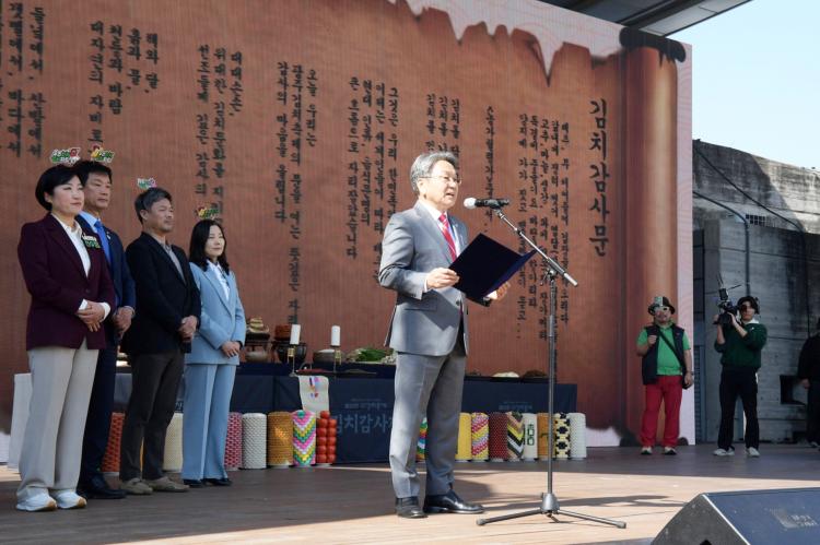 °±âÁ¤ ±¤ÁÖ±¤¿ª½ÃÀåÀÌ 31ÀÏ ½Ãû ¾ß¿ÜÀ½¾Ç´ç¿¡¼ ¿¸° Á¦32ȸ ±¤ÁÖ±èÄ¡ÃàÁ¦ °³¸·½Ä¿¡ Âü¼®ÇØ ±èÄ¡°¨»ç¹®À» ³¶µ¶Çϰí ÀÖ´Ù.(»çÁø=±¤ÁÖ±¤¿ª½Ã)