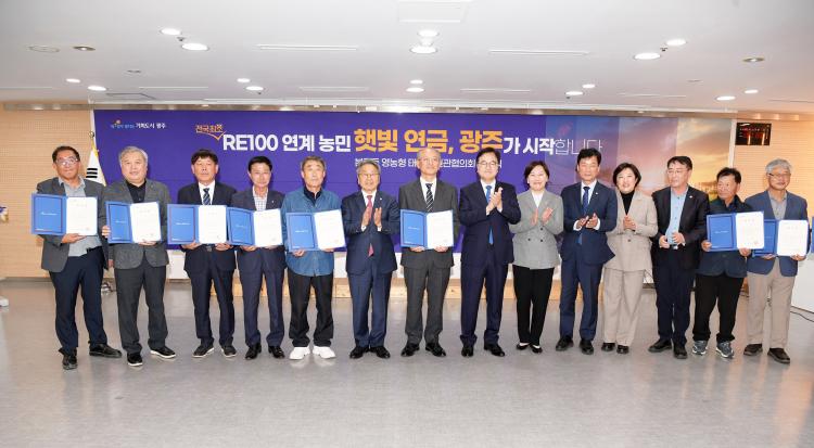 °±âÁ¤ ±¤ÁÖ½ÃÀåÀº ¡°À̹ø »ç¾÷Àº ³ó¹Î¿¡°Ô´Â ÇÞºû¿¬±ÝÀ», ±â¾÷¿¡°Ô´Â RE100 ½ÇÇöÀ» °¡´ÉÄÉ ÇÏ´Â ÀÏ°Å¾çµæ »ç¾÷ÀÌ´Ù¡±¸ç ¡°³ó¹Î ÁÖµµÀÇ ¹Î°üÇùÀÇȸ°¡ »çȸÀû ÇÕÀǸ¦ À̲ô´Â ¼º°ø ¸ðµ¨ÀÌ µÇ¾î ³ó¾÷°ú ¿¡³ÊÁö°¡ »ó»ýÇÏ´Â Àü±¹Àû Ç¥ÁØÀ» ¸¸µé°Ú´Ù¡±°í ¸»Çß´Ù.