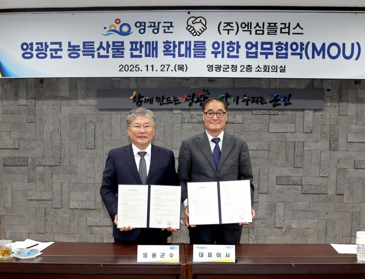 [±¤ÁÖÀü³²´º½º/¹Ú¿ë´ö ±âÀÚ] ¿µ±¤±º(±º¼ö Àå¼¼ÀÏ)Àº ¿µ±¤ ³óƯ»ê¹°ÀÇ ÆÇ·Î¸¦ ¾ÈÁ¤ÀûÀ¸·Î È®´ëÇÏ°í °æÀï·ÂÀ» °ÈÇϱâ À§ÇØ Àü¹®À¯Åë±â¾÷ ¢ß¿¢½ÉÇ÷¯½º¿Í ¡®¿µ±¤±º ³óƯ»ê¹° ÆÇ¸Å È®´ë¸¦ À§ÇÑ ¾÷¹«Çù¾à(MOU)¡¯À» ü°áÇß´Ù°í ¹àÇû´Ù.
