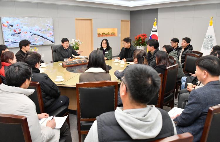 [±¤ÁÖÀü³²´º½º/±èº´¼ö ±âÀÚ] ´ã¾ç±º(±º¼ö Á¤Ã¶¿ø)Àº Áö³ 5ÀÏ ´ã¾ç±ºÃ» ¼Ò¼â¿ø½Ç¿¡¼ Áö¿ª ³ó¾÷ÀÇ ¹Ì·¡¸¦ À̲ø¾î°¥ û³â ³ó¾÷Àΰú ³ó¾÷»ç°üÇб³ Á¹¾÷»ýµéÀÌ Âü¼®ÇÑ °¡¿îµ¥, ÇöÀåÀÇ ¸ñ¼Ò¸®¸¦ Á÷Á¢ µè°í ¹ßÀü ¹æ¾ÈÀ» ¸ð»öÇϱâ À§ÇÑ ¡®Ã»³â ³ó¾÷ÀÎ ¼ÒÅë °£´ãȸ¡¯¸¦ °³ÃÖÇß´Ù.
