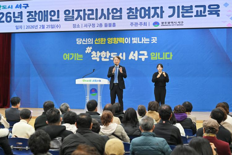 [±¤ÁÖÀü³²´º½º/ÀÓ¸í¼ø ±âÀÚ] ±¤ÁÖ±¤¿ª½Ã ¼±¸(±¸Ã»Àå ±èÀ̰)°¡ Àå¾ÖÀÎÀÇ »çȸÂü¿© È®´ë¿Í ÀÚ¸³±â¹Ý °È¸¦ À§ÇÑ ¡®2026³â Àå¾ÖÀÎÀÏÀÚ¸®»ç¾÷¡¯À» ÃßÁøÇÑ´Ù. ¼±¸´Â 25ÀÏ ¼±¸Ã» µéºÒȦ¿¡¼ Àå¾ÖÀÎÀÏÀÚ¸®»ç¾÷ Âü¿©ÀÚ 160¿© ¸íÀ» ´ë»óÀ¸·Î ¾ÈÀüº¸°Ç ¹× Á÷¹« ¼Ò¾ç ±³À°À» ½Ç½ÃÇß´Ù. À̹ø ±³À°Àº Âü¿©ÀÚµéÀÇ Á÷¹« ÀÌÇØµµ¸¦ ³ôÀÌ°í »ê¾÷ÀçÇØ¸¦ ¿¹¹æÇϱâ À§ÇØ ¸¶·ÃµÆ´Ù.