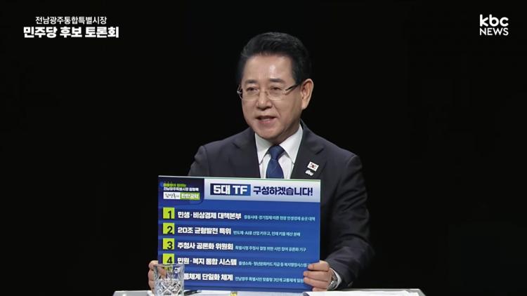 [±¤ÁÖÀü³²´º½º/Á¤Ã³Ä¥ ±âÀÚ] ±è¿µ·Ï ¹ÎÁÖ´ç Àü³²±¤ÁÖÆ¯º°½ÃÀå ¿¹ºñÈ帴 Áö³ 25ÀÏ ¿¸° ¡®KBC±¤ÁÖ¹æ¼Û ¹ÎÁÖ´ç Èĺ¸ÀÚ ÇÕµ¿ Åä·Ðȸ¡¯¿¡¼ ¡°Àü³²±¤ÁÖÆ¯º°½Ã Ãâ¹ü¿¡ µû¸¥ °¥µî°ú ºÎÀÛ¿ë ÇØ¼Ò ¹× Áö¼Ó°¡´ÉÇÑ ¹ßÀüÀ» À§Çؼ´Â Á¤Ä¡°¡°¡ ¾Æ´Ñ ¡®ÀÏ ÀßÇÏ´Â ÇàÁ¤°¡¡¯°¡ ÇÊ¿äÇÏ´Ù¡±´Â Á¡À» ºÎ°¢½ÃŰ´Â µ¥ ÁÖ·ÂÇß´Ù. ÀÚ½ÅÀÌ¾ß ¸»·Î ¡®¿¬½ÀÀÌ ÇÊ¿ä ¾ø´Â¡¯ ÃÖ°íÀÇ ÇàÁ¤°¡·Î, Àü³²±¤ÁÖÆ¯º°½ÃÀåÀÇ ÃÖÀûÀÓÀÚ¶ó´Â ¾ê±â´Ù.