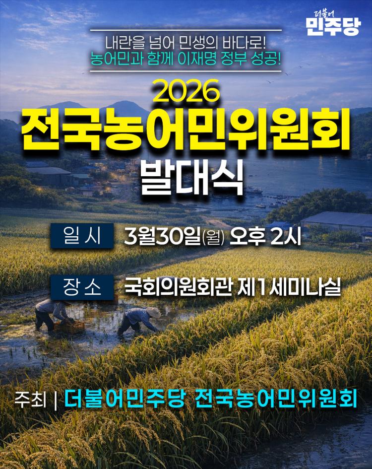 ÁÖ¿ä ÇÁ·Î±×·¥À¸·Î´Â ¡â¹®±ÝÁÖ À§¿øÀåÀÇ Ãâ¹ü ¼±¾ð ¹× Àλ縻 ¡âÀÓ¸íÀå ¼ö¿©½Ä ¡â2026³âµµ »ç¾÷°èȹ º¸°í µîÀÌ ÁøÇàµÉ ¿¹Á¤À̸ç, ƯÈ÷ ³ó¾î¹ÎµéÀÇ »ýÁ¸±Ç º¸Àå°ú ¹Î»ý ȸº¹ÀÇ ¿°¿øÀ» ´ãÀº ¡®Àü±¹³ó¾î¹ÎÀ§¿øÈ¸ Ãâ¹ü °áÀǹ® ³¶µ¶¡¯°ú ÇÇÄÏ ÆÛÆ÷¸Õ½º°¡ À̾îÁú °èȹÀÌ´Ù.