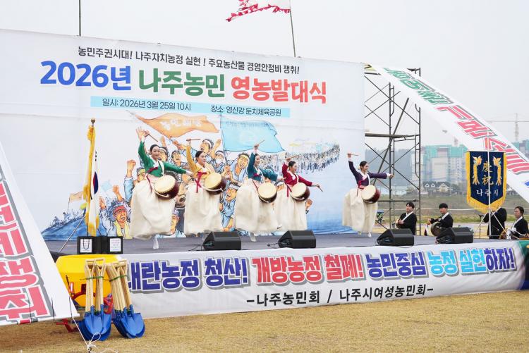 [±¤ÁÖÀü³²´º½º/Á¤Ã³Ä¥ ±âÀÚ] ³ªÁֽð¡ º»°ÝÀûÀÎ ¿µ³óöÀ» ¾ÕµÎ°í ³ó¾÷ÀÎÀÇ ÈÇÕ°ú °á¼ÓÀ» ´ÙÁö¸ç dz³â ³ó»ç¸¦ ±â¿øÇÏ´Â ¿µ³ó¹ß´ë½ÄÀ» °³ÃÖÇß´Ù.