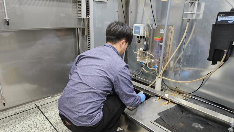 Á¤¼öÀå¿¡¼ ¼öÁú°Ë»ç¸¦ À§ÇØ ¿ø¡¤Á¤¼ö¸¦ äÃëÇÏ´Â ¸ð½À (»çÁø=ȼø±º)
