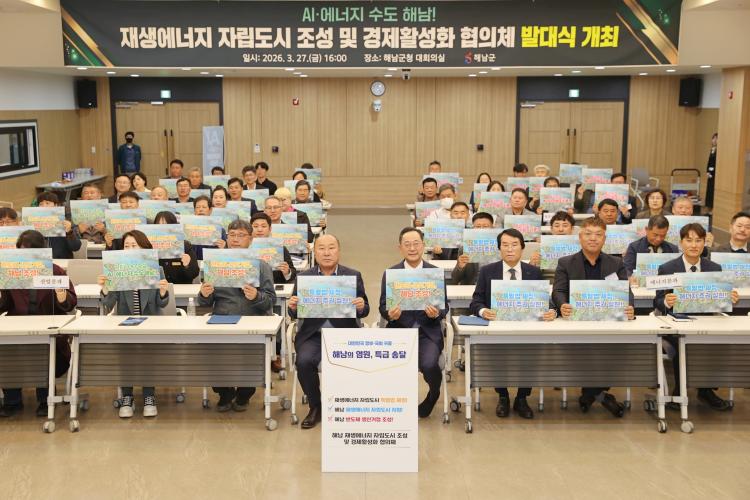ÇØ³²±ºÀº 27ÀÏ ±ºÃ» ´ëȸÀǽǿ¡¼ ¡®Çس² Àç»ý¿¡³ÊÁö ÀÚ¸³µµ½Ã Á¶¼º ¹× °æÁ¦È°¼ºÈ ÇùÀÇü¡¯ ¹ß´ë½ÄÀ» °³ÃÖÇϰí, Àç»ý¿¡³ÊÁö Á᫐ ¹Ì·¡»ê¾÷ ±â¹Ý ±¸ÃàÀ» À§ÇÑ ¹Î°ü Çù·Â °Å¹ö³Í½º¸¦ °ø½Ä Ãâ¹ü½ÃÄ×´Ù.