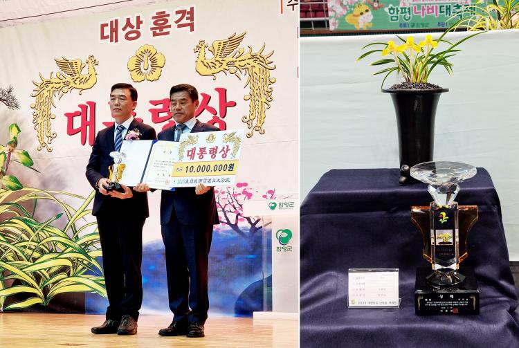 (¿ÞÂÊ »çÁø) °ÇÏÃá ÇÔÆò±º¼ö ±ÇÇÑ´ëÇà(ÁÂ)ÀÌ ¡®2026 ´ëÇѹα¹ ³¸íǰ ´ëÁ¦Àü¡¯¿¡¼ ÃÖ°í ¿µ¿¹ÀÎ ´ëÅë·É»óÀ» ¼ö»óÇÑ ¾çÀ§½Â ¾¾(¿ì)¿Í ±â³ä ÃÔ¿µÀ» Çϰí ÀÖ´Ù. / (¿À¸¥ÂÊ »çÁø) ´ëÅë·É»óÀ» Â÷ÁöÇÑ ¾çÀ§½Â ¾¾ÀÇ È¿¹ºÎ¹® ÃâǰÀÛ ¡®È²È¼Ò½É(º¸¸§´Þ)¡¯ÀÇ ¸ð½À (»çÁø=ÇÔÆò±º)