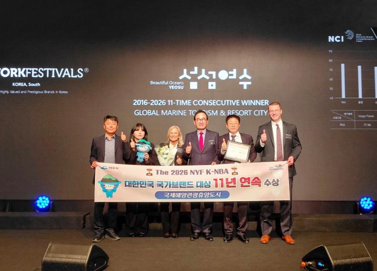 ¿©¼ö½Ã°¡ ¡®2026 ´ëÇѹα¹ ±¹°¡ºê·£µå ´ë»ó¡¯¿¡¼ ±¹Á¦Çؾç°ü±¤È޾絵½ÃºÎ¹® 11³â ¿¬¼Ó ´ë»óÀ» ¼ö»óÇß´Ù.(»çÁø=¿©¼ö½Ã)
